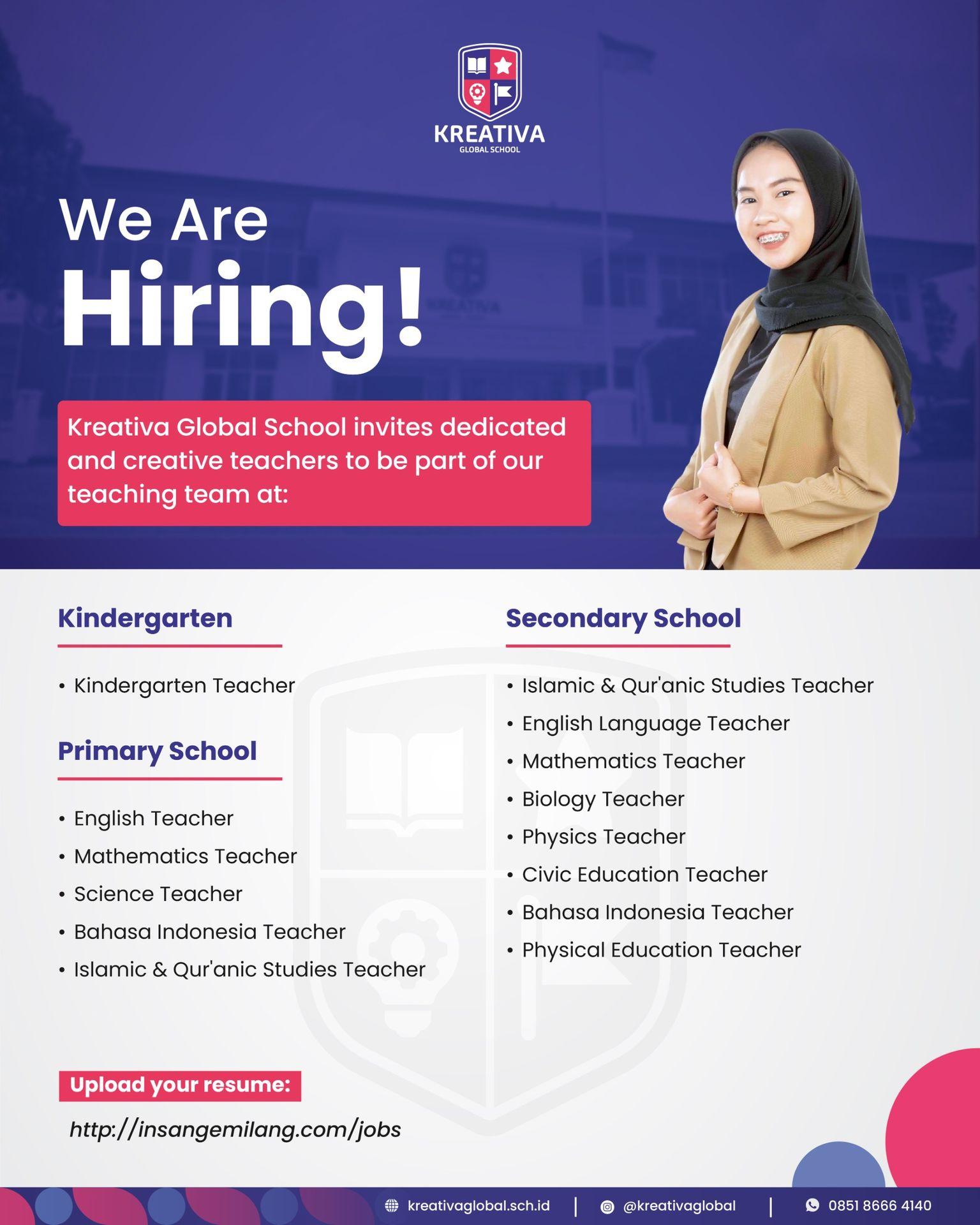 Kreativa Global is an international Islamic school, from Kindergarten, Primary, Secondary, up to Junior College, with the Cambridge curriculum, IB approach, and Islamic values. It nurtures creativity, critical thinking, and strong moral character from an early age. Supported by modern facilities, qualified teachers, and English as the language of instruction, we are now opening a position for a Islamic & Qur'anic Studies Teacher (Secondary).